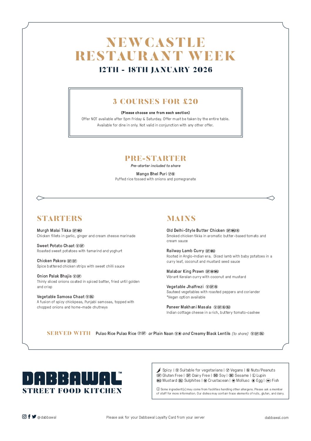 Newcastle Restaurant Week returns from 12th to 18th January, and we’re taking part with a menu that brings together the flavours and dishes we love most at Dabbawal!